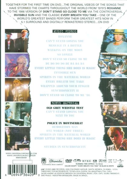 All the evidence that Sting, Andy Summers, and Stewart Copeland deserved their 2003 induction into the Rock and Roll Hall of Fame is right here in this two-hour (including bonus features) DVD package. Unfortunately, not a lot of that evidence is visual; the Police's videos--at least the 10 directed by Derek Burbige--seem thrown together and uninspired, consisting mostly of the trio half-heartedly lip-syncing or merely horsing around (the four later ones by Kevin Godley and Lol Creme are a considerable improvement). We do get to see Sting at his most punk (a '78 live version of "Can't Stand Losing You") and most iconic (the "Every Breath You Take" video), and the 48-minute Ghost in the Machine-era documentary is interesting. But it wasn't MTV that got the Police into the Hall; it was superb musicianship and wonderful songs. And here in their digitally remastered glory, they all sound great. --Sam Graham