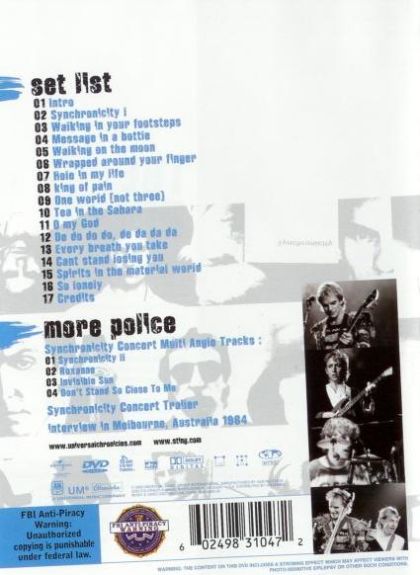 "Finally!! Live Police On DVD!!! A truly inspiring band at the absolute peak of their powers both as musicians and performers. Essential viewing (and reviewing)." -- Taylor Hawkins (Foo Fighters)