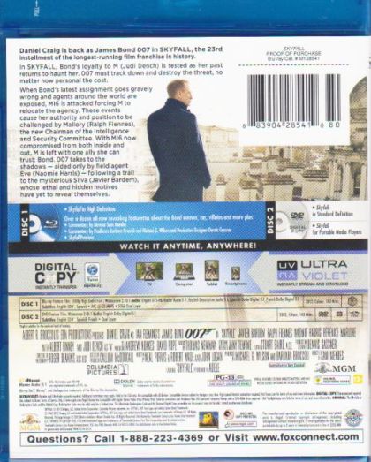 Daniel Craig is back as James Bond 007 in SKYFALL, the 23rd adventure in the longest-running film franchise of all time. In Skyfall, Bond’s loyalty to M (Judi Dench) is tested as her past comes back to haunt her. As MI6 comes under attack, 007 must track down and destroy the threat, no matter how personal the cost.