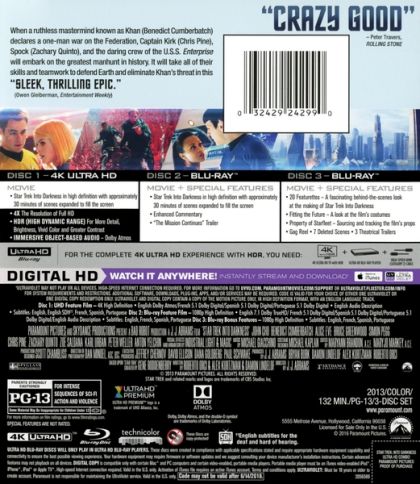 When the crew of the Enterprise is called back home, they find an unstoppable force of terror from within their own organization has detonated the fleet and everything it stands for, leaving our world in a state of crisis. With a personal score to settle, Captain Kirk leads a manhunt to a war-zone world to capture a one man weapon of mass destruction. As our heroes are propelled into an epic chess game of life and death, love will be challenged, friendships will be torn apart, and sacrifices must be made for the only family Kirk has left: his crew.