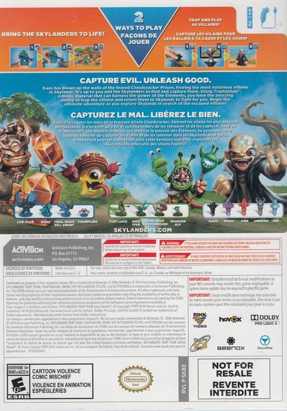 Skylanders Trap Team introduces a ground-breaking innovation that lets Portal Masters "trap" the most wanted villains in Skylands and then play as them in the game in the battle for good. The game offers an unprecedented new addition to the game's play pattern in the form of Traptanium Traps. When this new type of toy is placed directly into the Traptanium PortalTM, Portal Masters can "capture" a variety of special villains from the game and magically transport them from Skylands into the real world.