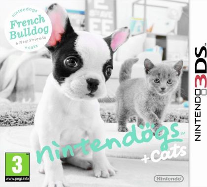 nintendogs puppies are back in the palm of your hand on the Nintendo 3DS system, with even cuter and more expressive puppies and, for the first time, kittens! The fun from the original nintendogs game returns, with multiple breeds to choose from, accessories for your puppies and kittens to wear, and the ability to let your puppies and kittens train and compete in different challenges and activities. nintendogs + cats uses the built-in Nintendo 3DS camera and facial-recognition technology to enable your puppies and kittens to react to your real-life movements, mimicking your head tilts and jumping up to lick you as you lean in.