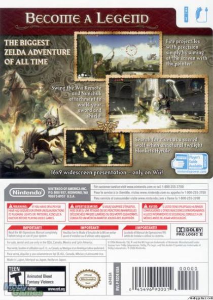 Special powers/weapons/moves/features: Besides his trusty sword and shield, Link will use his bow and arrows, fight while on horseback and use a wealth of other items, both new and old. Players can use the Wii Remote as a fishing pole, while a spin of the Nunchuk controller executes a spin attack.