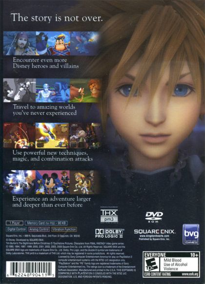 KINGDOM HEARTS II follows Sora, Donald, and Goofy on their continuing quest. Sora is looking for his lost friend Riku, while Donald and Goofy are searching for their missing king. The story begins in Twilight Town, a quiet burg nestled between night and day. Sora and friends are joined by a vibrant new cast of characters, including the king himself! Together, they will encounter countless dangers in worlds both familiar and brand-new.