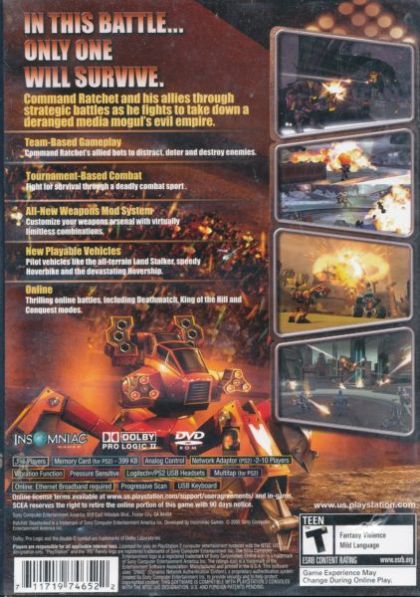 It doesn't take Vox long to realize that Ratchet is the most promising contestant the show has ever seen. Vox subjects our hero to a series of deadly battles and elaborate games of death, much to the delight of the show's enormous audience. To keep himself and his friends alive, Ratchet has no choice but to participate in the games and keep driving up the show's ratings with spectacular victories -- at least until our heroes can figure out a way to break free from Vox's control, the explosive Deadlock collar fastened to his neck, and bring the mighty Vox Network crashing down.