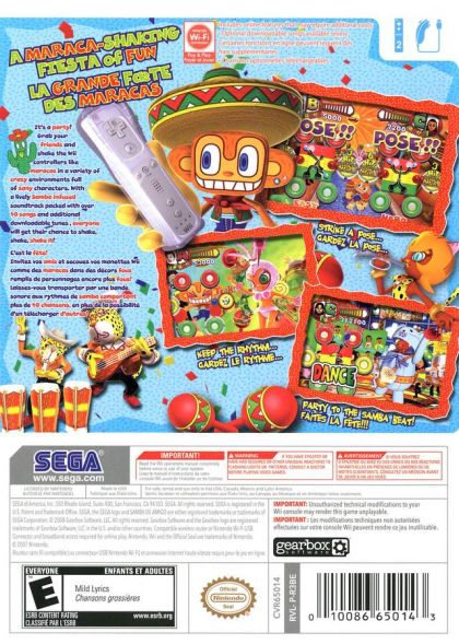 The samba-inspired rhythm music game made popular in the arcades is shaking its way onto Wii! Keeping the beat with over 40 songs on a Samba-inspired sound track, players shake the Wii Remote and Nunchuk like maracas and compete with friends to see who has the best moves. Throughout the dynamic songs there will be opportunities to strike a pose for extra points. Friends and family will be thoroughly entertained cheering each other on as they anxiously await their next turn.