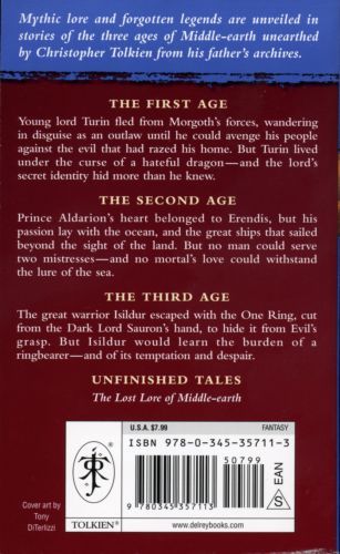 An extraordinary discovery is waiting for you on these pages. Mythic lore and forgotten legends unearthed by Christopher Tolkien from his father's archives unveil never-before-told stories of the three ages of ancient Middle-earth.THE FIRST AGEYoung lord Turin fled from Morgoth’s forces, wandering in disguise as an outlaw until he could avenge his people against the evil that had razed his home. But Turin lived under the curse of a hateful dragon—and the lord’s secret identity hid more than he knew.THE SECOND AGEPrince Aldarion’s heart belonged to Erendis, but his passion lay with the ocean, and the great ships that sailed beyond the sight of the land. But no man could serve two mistresses—and no mortal’s love could withstand the lure of the sea.THE THIRD AGEThe great warrior Isildur escaped with the One Ring, cut from the Dark Lord Sauron’s hand, to hide it from Evil’s grasp. But Isildur would learn the burden of a ringbearer—and of its temptation and despair.