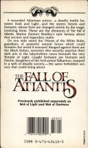 A wounded Atlantean prince...a deadly battle between Dark and Light...and the sisters Deoris and Domaris, whose lives are changed utterly by the magic involving them. These are the elements of The Fall of Atlantis, Marion Zimmer Bradley's epic fantasy about that ancient and legendary realm.On one side stand the Priests of the White Robe, guardians of powerful natural forces which could threaten the world if misused. Ranged against them are the Black Robes, sorcerers who secretly practice their dark arts in the labyrinthine caves beneath the very Temple of Light. Caught between are Domaris and Deoris, daughters of the Archpriest Talkannon, trapped in a web of deadly sorcery -- the same forbidden sorcery that could bring aboutThe FALL of ATLANTIS