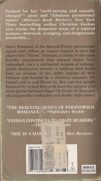 In this “suspenseful...captivating” (Publishers Weekly) novel in GhostWalker series, #1 New York Times bestselling author Christine Feehan tracks the desperate steps of a wanted woman—betrayed, avenging, and dangerously irresistible… Gator Fontenot of the Special Forces paranormal squad can’t refuse an urgent request to save the elusive Iris “Flame” Johnson, a victim of the same horrific experiments that warped Gator. Now unleashed, she’s a red-haired weapon of unimaginable destructive powers, a walking time bomb bent on revenge in the sultry bayous of New Orleans, and hunted by a shadowy assassin. It’s Gator’s job to reel Flame in. But can two people haunted by violent betrayals trust the passion that soon ignites between them? Or is one of them just playing another seductive and deadly night game?