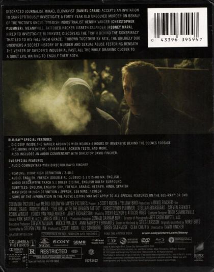 This English-language adaptation of the Swedish novel by Stieg Larsson follows a disgraced journalist, Mikael Blomkvist (Daniel Craig), as he investigates the disappearance of a wealthy patriarch's niece from 40 years ago. He is aided by the pierced, tattooed, punk computer hacker named Lisbeth Salander (Rooney Mara). As they work together in the investigation, Blomkvist and Salander uncover immense corruption beyond anything they have ever imagined.