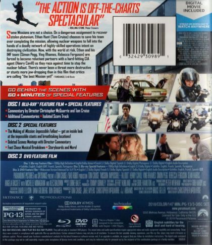 After a mission goes wrong and anarchist Solomon Lane (Sean Harris) escapes custody, Ethan Hunt (Tom Cruise) and his IMF team are blamed and their loyalty is questioned. They attempt to fulfill their initial mission and recapture Lane while also trying to outrun a ruthless CIA agent (Henry Cavill) tasked with taking them out. As Hunt fends off these old and new threats, he also realizes allies within IMF might have other motives. Produced, written and directed by Christopher McQuarrie. Alec Baldwin, Angela Bassett, Rebecca Ferguson, Simon Pegg, Ving Rhames and Michelle Monaghan co-star.