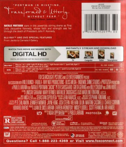 This movie is a portrait of one of the most important and tragic moments in American history, seen through the eyes of the iconic First Lady, then Jacqueline Kennedy (Natalie Portman). Jackie places us in her world during the days immediately following her husband's assassination. Known for her extraordinary dignity and poise, here we see a portrait of the First Lady as she fights to establish her husband's legacy and the world of "Camelot" that she created and loved so well.