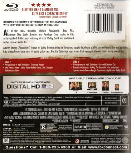 Desperately in need of cash to pay off his rapidly-increasing debt, the Counselor--a suave and prominent lawyer--decides to enter the obscure world of drug trafficking, in an ill-advised, one-off deal that would make him rich enough to support a lavish lifestyle and his new girlfriend, Laura. Driven by greed, the successful advocate is bent on putting to good use his connections to the criminal underworld--the nightclub owner, Reiner, and the seedy middleman, Westray--however, keeping ignoring the fact that theirs is a violent, destructive, and unforgiving world. Unwisely, the Counselor thinks that he knows all the angles to succeed; nevertheless, what happens if the deal goes wrong?