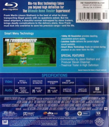Ex-Special Forces operator Frank Martin lives what seems to be a quiet life along the French Mediterranean, hiring himself out as a mercenary "transporter" who moves goods--human or otherwise--from one place to another. No questions asked. Carrying out mysterious and sometimes dangerous tasks in his tricked-out BMW, Frank adheres to a strict set of rules, which he never breaks. Rule One: Never change the deal. Rule Two: No names--Frank doesn't want to know whom he's working for, or what he's transporting. Rule Three: never look in the package. Frank's newest transport seems no different from the countless ones he's done in the past. He's been hired by an American known only as "Wall Street" to make a delivery; but when Frank stops along the route, he notices his package is moving. Violating Rule Three, Frank looks inside the bag, finding its contents to be a beautiful, gagged woman. Frank's steadfast adherence to his other two rules--which make up his basic code of survival--also quickly fails, hurtling him and his new companion on a road leading to shocking secrets, deadly complications, and the last thing that Frank ever expected to come to believe: that rules are made to be broken.