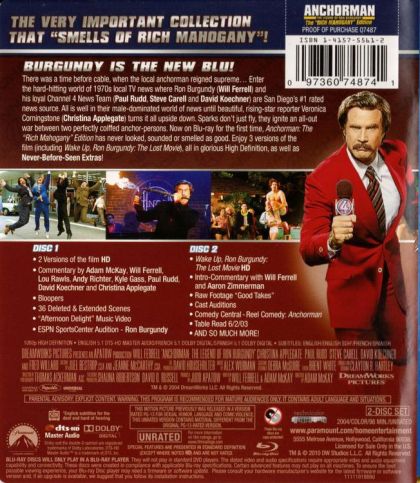 In the mid 1970's, Ron Burgundy (Will Ferrell) is the famous and successful anchorman for San Diego's KVWN-TV Channel 4 Evening News. He works alongside his friends on the news team: fashion-oriented lead field reporter Brian Fantana (Paul Rudd), sportscaster Champion "Champ" Kind (David Koechner), and a "legally retarded" chief meteorologist Brick Tamland (Steve Carell). The team is notified by their boss, Ed Harken (Fred Willard), that their station has maintained its long-held status as the highest-rated news program in San Diego, leading them to throw a wild party. Ron sees an attractive blond woman and immediately tries to hit on her. After an awkward, failed pick-up attempt, the woman leaves.
