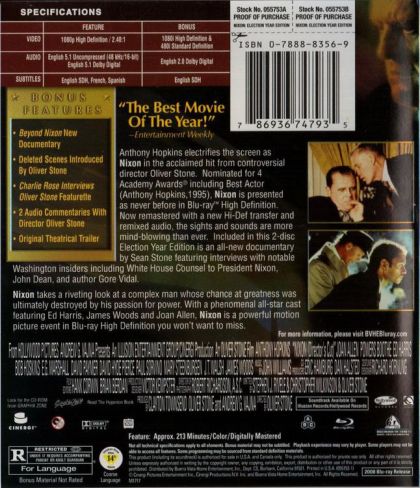 Writer, Producer, and Director Oliver Stone's exploration of former President Richard Nixon's strict Quaker upbringing, his nascent political strivings in law school, and his strangely self-effacing courtship of his wife, Pat (Joan Allen). The contradictions in his character are revealed early, in the vicious campaign against Helen Gahagan Douglas and the oddly masochistic Checkers speech. His defeat at the hands of the hated and envied John F. Kennedy in the 1960 presidential election, followed by the loss of the 1962 California gubernatorial race, seem to signal the end of his career. Yet, although wholly lacking in charisma, Nixon remains a brilliant political operator, seizing the opportunity provided by the backlash against the antiwar movement to take the Presidency in 1968. It is only when safely in office, running far ahead in the polls for the 1972 Presidential election, that his growing paranoia comes to full flower, triggering the Watergate scandal.