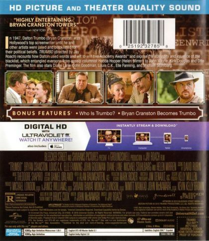 In 1947, Dalton Trumbo (Bryan Cranston) was Hollywood's top screenwriter until he and other artists were jailed and blacklisted for their political beliefs. TRUMBO (directed by Jay Roach) recounts how Dalton used words and wit to win two Academy Awards and expose the absurdity and injustice under the blacklist, which entangled everyone from gossip columnist Hedda Hopper (Helen Mirren) to John Wayne, Kirk Douglas and Otto Preminger.
