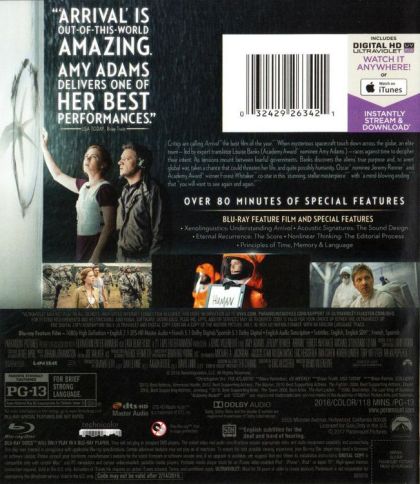 Linguistics professor Louise Banks leads an elite team of investigators when gigantic spaceships touchdown in 12 locations around the world. As nations teeter on the verge of global war, Banks and her crew must race against time to find a way to communicate with the extraterrestrial visitors. Hoping to unravel the mystery, she takes a chance that could threaten her life and quite possibly all of mankind.