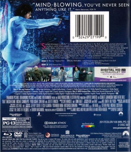 In the near future, Major Mira Killian (Scarlett Johansson) is the first of her kind: A human saved from a terrible terrorist attack, who is cyber-enhanced to be a perfect soldier devoted to stopping the world's most dangerous criminals. When terrorism reaches a new level that includes the ability to hack into people's minds and control them, Major Killian is uniquely qualified to stop it. As she prepares to face a new enemy, Major Killian discovers that she has been lied to: her life was not saved, it was stolen. She will stop at nothing to recover her past, find out who did this to her and stop them before they do it to others.
