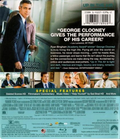 Ryan Bingham flies around the country firing people. He's good at his job and is constantly in the air flying from one city to another. He's also an accumulator of frequent flyer miles and has a goal: he wants to get to ten million miles. His routine is interrupted by the arrival of Natalie Keener, who thinks the travel is unnecessary and the firings can be done through videoconferencing. Ryan's boss loves the idea, but wants Ryan to take Natalie on the road with him to show her how he does it. It proves to be a life lesson for Natalie after one of her counseling sessions goes wrong. Ryan also learns that some of the choices he's made have not always been the correct one.