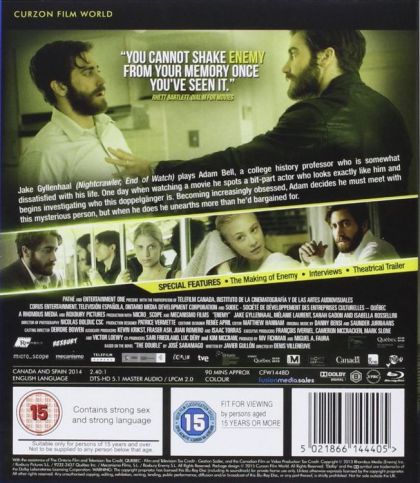 In the next scene, the man named Adam Bell (the Jake Gyllenhaal character) is teaching a college history class, his main subject matter revolves around topics of dictatorship control and how history has a tendency to repeat itself. Later that night his girlfriend Mary (Mélanie Laurent) comes over to his apartment and they engage in casual sex. A few scenes occur in which to suggest his life is a series of repetitive patterns. The next day after teaching class, while in the teachers' lounge a colleague has a suggestion for a movie he might find interesting. Adam rents the movie on the way home. His girlfriend, Mary, is tired and goes to bed. Adam stays up late and watches the movie, which is titled 'Where There's a Will There's a Way'. Adam goes to bed, and has rough sex with Mary again. She gets mad, and storms out of the apartment. He wakes up realizing that he saw his doppelganger (also Jack Gyllenhaal in a dual role) in the film.