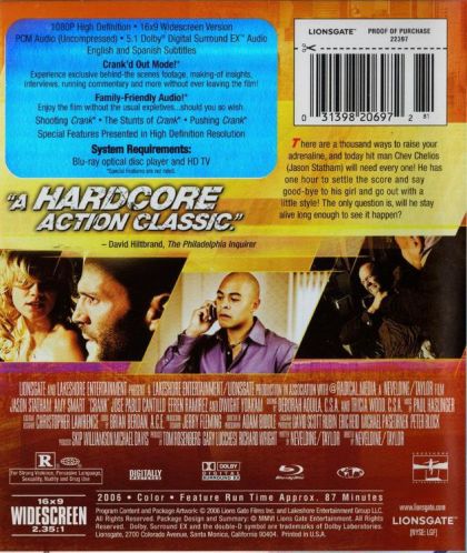 Chev Chelios, a hit man wanting to go straight, lets his latest target slip away, then he awakes the next morning to a phone call that informs him he has been poisoned and has only an hour to live unless he keeps adrenaline coursing through his body while he searches for an antidote.