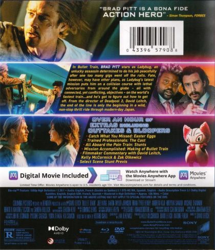 Unlucky assassin Ladybug (Brad Pitt) is determined to do his job peacefully after one too many gigs has gone off the rails. Fate has other plans, however: Ladybug's latest mission puts him on a collision course with lethal adversaries from around the globe--all with connected, yet conflicting, objectives--on the world's fastest train. The end of the line is just the beginning in this non-stop thrill-ride through modern-day Japan.