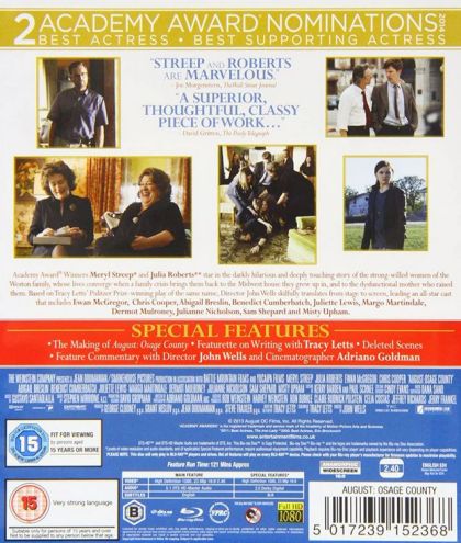 Violet Weston (Meryl Streep) has cancer and a propensity for pills and alcohol. She's a difficult woman to deal with and her husband has finally had enough. Violet's family gathers including middle daughter Ivy, youngest daughter Karen (with her new fiancé), eldest daughter Barbara (with her separated husband and teenage daughter), and her sister Mattie Fae (with her husband and son in tow). A family tragedy causes tensions to run high and secrets to come out. The Weston women will be forced to examine themselves and their lives whether they want to or not. Welcome to Osage County, Oklahoma in the sweltering heat of August.
