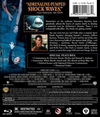 After one of the sharks escapes and attacks a boat full of teenagers, Aquatica's financial backers send corporate executive Russell Franklin (Samuel L Jackson) to investigate the facility. To prove that the research is working, the team manages to remove brain tissue from the largest shark. While examining it, Dr. Jim Whitlock (Stellan Skarsgard), one of the researchers, is attacked by the shark and his arm is bitten off. Brenda Kerns (Aida Turturro), the tower's operator, calls a helicopter to evacuate Jim but a strong hurricane causes the helicopter to lose control and crash into the tower, killing Brenda and the pilots. One of the sharks uses Jim's body as a battering ram to smash an underwater window, flooding the research facility and freeing the other sharks. Susan then confesses to the others that she genetically altered the sharks.