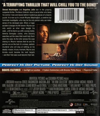 Rookie cop, Amelia Donaghy reluctantly teams with Lincoln Rhyme – formerly the department's top homicide detective but now paralyzed as a result of a spinal injury – to catch a grisly serial killer dubbed 'The Bone Collector'. The murderer's special signature is to leave tantalizing clues based on the grim remains of his crimes.