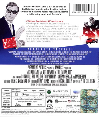 A Lamborghini Miura drives through the Italian Alps, enters a tunnel, crashes and explodes. A bulldozer pulls the remains from the tunnel and dumps them down a steep alpine gorge. Some time later dapper mobster Charlie Croker (Caine) is released from prison. He soon meets with the widow (Goldoni) of his friend and fellow thief Roger Beckermann (Brazzi), victim of the Miura crash. She gives Croker her husband's plans for the robbery that attracted the attention of the Italian Mafia. The plans outline a way to rob the payroll of Turin-based automaker Fiat, and spirit it out of Italy.