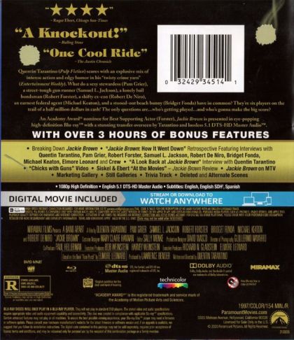 Jackie Brown is the name of a flight attendant who gets caught smuggling her boss's gun money on the airline she works for. Luckily for her, Fed Ray Nicolet and L.A. cop Mark Dargus decide to team up in order to arrest the arms dealer she works for, whose name they don't even know. Here's when she has to choose one way: tell Nicolet and Dargus about Ordell Robbie (the arms dealer) and get her freedom-except that if Ordell suspects you're talking about him, you're dead-or keep her mouth shut and do some time. That's when she meets Max Cherry, her bail bondsman, a recently separated, burnt-out man in his late fifties, who falls in love with her. Then Jackie comes up with a plan to play the Feds off against Ordell and the guys he works with-Louis Gara and Melanie Ralston, among others-and walk off with their money. But she needs Max's help. No one is going to stand in the way of his million-dollar payoff.