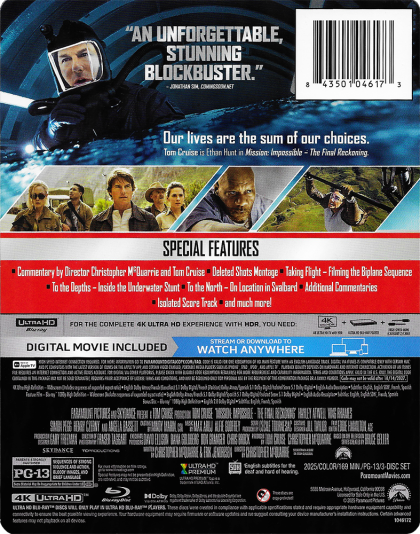 Ethan Hunt and team continue their search for the terrifying AI known as the Entity — which has infiltrated intelligence networks all over the globe — with the world's governments and a mysterious ghost from Hunt's past on their trail. Joined by new allies and armed with the means to shut the Entity down for good, Hunt is in a race against time to prevent the world as we know it from changing forever.