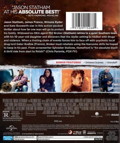 Two years after the raids of a gang's methamphetamine laboratory where his cover was blown, former DEA Agent and U.S. war veteran, Phil Broker (Jason Statham) and his daughter Maddy (Izabela Vidovic) have moved to a small Louisiana town where Maddy's deceased mother grew up. Maddy gets into a schoolyard fight with a bully named Teddy Klum; when Broker comes to the school, Teddy's hostile father, Jimmy (Marcus Hester), picks a fight with him and loses. Cassie Klum (Kate Bosworth) later asks her brother, a drug dealer named Gator Bodine (James Franco), to scare Broker. Broker fights off a few of Gator's thugs at a gas station when they threaten him. While he and Maddy later go horse riding, Gator breaks into their house. He deduces from old personnel files that Broker was the undercover cop responsible for the arrest of Danny T (Chuck Zito) in the raid two years earlier. Hoping to get a wider distribution for the drugs he manufactures, Gator tips off Danny T, who sends members of his gang to kill Broker..