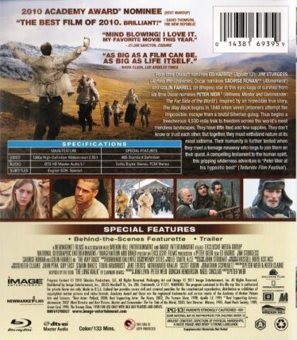 A small band of multicultural convicts stages a daring escape from a World War II-era Siberian gulag, and embarks on a treacherous journey across five countries in a desperate race for freedom and survival. Adapted from author Slavomir Rawicz's gripping memoir "The Long Walk: The Story of a Trek to Freedom", Writer, Producer, and Director Peter Weir's sweeping P.O.W. drama stars Jim Sturgess, Colin Farrell, Ed Harris, and Saoirse Ronan.