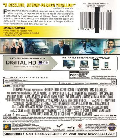 Frank Martin, played by newcomer Ed Skrein, a former special-ops mercenary, is now living a less perilous life - or so he thinks - transporting classified packages for questionable people. When Frank's father (Ray Stevenson) pays him a visit in the south of France, their father-son bonding weekend takes a turn for the worse when Frank is engaged by a cunning femme-fatale, Anna (Loan Chabanol), and her three seductive sidekicks to orchestrate the bank heist of the century. Frank must use his covert expertise and knowledge of fast cars, fast driving and fast women to outrun a sinister Russian kingpin, and worse than that, he is thrust into a dangerous game of chess with a team of gorgeous women out for revenge. From the producers of LUCY and the TAKEN trilogy, THE TRANSPORTER REFUELED is a fresh personification of the iconic role of Frank Martin, that launches the high-octane franchise into the present-day and introduces it to the next generation of thrill-seekers.