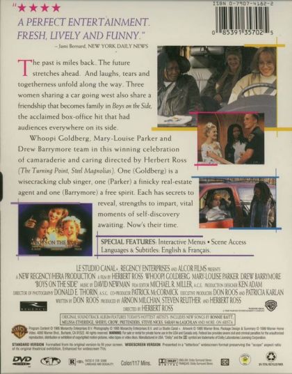 This female-bonding film takes your basic soap opera and twists it inside out. Although director Herbert Ross draws superb performances from his actresses, he occasionally wallows in that maudlin, Hollywood melodrama in which close-ups are crucial. Remember, this is the man who directed Steel Magnolias. However, Ross also does something you don't expect: he makes you fall in love with his characters. Whoopi Goldberg is a down-on-her luck singer who hopes to start over in Los Angeles. Mary-Louise Parker is the realtor whose life is going nowhere. After Goldberg answers Parker's ad in the paper for a companion to drive to LA, these two completely different women grudgingly find themselves emotionally involved. Drew Barrymore enters the picture on the first leg of the trip when Goldberg insists on visiting her. After battling with her drug-dealing boyfriend, the flighty, sexy Barrymore throws in with them. During their trek west, the women learn to take life as it lands on them while recognizing true friendship. The film is enlightened in that it accepts the complications and blurred family ties of the '90s. At the heart of the story is the realization that people can expand past expected boundaries. The movie gels in other areas as well. The all-female soundtrack is powerful and works to underscore, not overpower, certain scenes. The same can be said of the supporting cast, specifically Anita Gillette and James Remar.