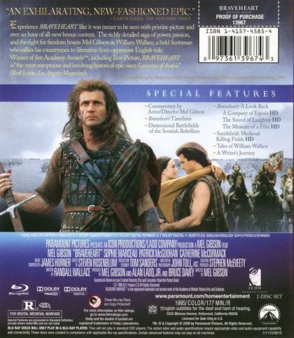 Mel Gibson's Oscar-winning 1995 Braveheart is an impassioned epic about William Wallace, the 13th-century Scottish leader of a popular revolt against England's tyrannical Edward I (Patrick McGoohan). Gibson cannily plays Wallace as a man trying to stay out of history's way until events force his hand, an attribute that instantly resonates with several of the actor's best-known roles, especially Mad Max. The subsequent camaraderie and courage Wallace shares in the field with fellow warriors is pure enough and inspiring enough to bring envy to a viewer, and even as things go wrong for Wallace in the second half, the film does not easily cave in to a somber tone. One of the most impressive elements is the originality with which Gibson films battle scenes, featuring hundreds of extras wielding medieval weapons. After Eisenstein's Alexander Nevsky, Orson Welles's Chimes at Midnight, and even Kenneth Branagh's Henry V, you might think there is little new that could be done in creating scenes of ancient combat; yet Gibson does it.