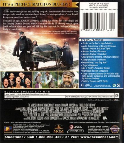 Film version of the stage musical, based on the stories of Sholom Aleichem. Tevye the Milkman is a Jewish peasant in pre-Revolutionary Russia, coping with the day-to-day problems of 'shtetl' life, his Jewish traditions, his family (wife and daughters), and state-sanctioned pogroms.
