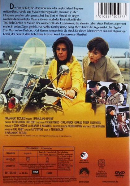 Black comedies don't come much blacker than this cult favorite from 1972, and they don't come much funnier, either. It seemed that director Hal Ashby was the perfect choice to mine a mother lode of eccentricity from the original script by Colin Higgins, about the unlikely romance between a death-obsessed 19-year-old named Harold (Bud Cort) and a life-loving 79-year-old widow named Maude (Ruth Gordon). They meet at a funeral, and Maude finds something oddly appealing about Harold, urging him to "reach out" and grab life by the lapels as opposed to dwelling morbidly on mortality. Harold grows fond of the old gal--she's a lot more fun than the girls his mother desperately matches him up with--and together they make Harold & Maude one of the sweetest and most unconventional love stories ever made. Much of the earlier humor arises from Harold's outrageous suicide fantasies, played out as a kind of twisted parlor game to mortify his mother, who's grown immune to her strange son's antics. Gradually, however, the film's clever humor shifts to a brighter outlook and finally arrives at a point where Harold is truly happy to be alive. Featuring soundtrack songs by Cat Stevens, this comedy certainly won't appeal to all tastes (it was a box-office flop when first released), but if you're on its quirky wavelength, it might just strike you as one of the funniest movies you've ever seen. --Jeff Shannon