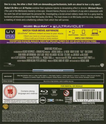 Having developed his skill as a master of contemporary crime drama, writer-director Michael Mann displayed every aspect of that mastery in this intelligent, character-driven thriller from 1995, which also marked the first onscreen pairing of Robert De Niro and Al Pacino. The two great actors had played father and son in the separate time periods of The Godfather, Part II, but this was the first film in which the pair appeared together, and although their only scene together is brief, it's the riveting fulcrum of this high-tech cops-and-robbers scenario. De Niro plays a master thief with highly skilled partners (Val Kilmer and Tom Sizemore) whose latest heist draws the attention of Pacino, playing a seasoned Los Angeles detective whose investigation reveals that cop and criminal lead similar lives. Both are so devoted to their professions that their personal lives are a disaster. Pacino's with a wife (Diane Venora) who cheats to avoid the reality of their desolate marriage; De Niro pays the price for a life with no outside connections; and Kilmer's wife (Ashley Judd) has all but given up hope that her husband will quit his criminal career. These are men obsessed, and as De Niro and Pacino know, they'll both do whatever's necessary to bring the other down. Mann's brilliant screenplay explores these personal obsessions and sacrifices with absorbing insight, and the tension mounts with some of the most riveting action sequences ever filmed--most notably a daylight siege that turns downtown Los Angeles into a virtual war zone of automatic gunfire. At nearly three hours, the film qualifies as a kind of intimate epic, certain to leave some viewers impatiently waiting for more action, but it's all part of Mann's compelling strategy. Heat is a true rarity: a crime thriller with equal measures of intense excitement and dramatic depth, giving De Niro and Pacino a prime showcase for their finely matched talents. --Jeff Shannon