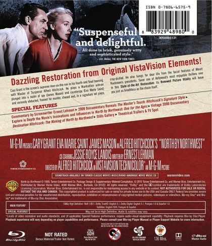 A strong candidate for the most sheerly entertaining and enjoyable movie ever made by a Hollywood studio (with Citizen Kane, Only Angels Have Wings and Trouble in Paradise running neck and neck). Positioned between the much heavier and more profoundly disturbing Vertigo (1958) and the stark horror of Psycho (1960), North by Northwest (1959) is Alfred Hitchcock at his most effervescent in a romantic comedy-thriller that also features one of the definitive Cary Grant performances. Which is not to say that this is just "Hitchcock Lite"; seminal Hitchcock critic Robin Wood (in his book Hitchcock's Films Revisited) makes an airtight case for this glossy MGM production as one of The Master's "unbroken series of masterpieces from Vertigo to Marnie." It's a classic Hitchcock Wrong Man scenario: Grant is Roger O. Thornhill (initials ROT), an advertising executive who is mistaken by enemy spies for a U.S. undercover agent named George Kaplan. Convinced these sinister fellows (James Mason as the boss, and Martin Landau as his henchman) are trying to kill him, Roger flees and meets a sexy Stranger on a Train (Eva Marie Saint), with whom he engages in one of the longest, most convolutedly choreographed kisses in screen history. And, of course, there are the famous set pieces: the stabbing at the United Nations, the crop-duster plane attack in the cornfield (where a pedestrian has no place to hide), and the cliffhanger finale atop the stone faces of Mount Rushmore. Plus a sparkling Ernest Lehman script and that pulse-quickening Bernard Herrmann score. What more could a moviegoer possibly desire? --Jim Emerson