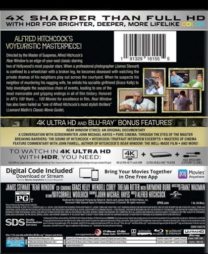 At minimum, Hitchcock's skill at making us accomplices to Jeff's spying, coupled with an ingenious escalation of suspense as the teasingly vague evidence coalesces into ominous proof, deliver a superb thriller spiked with droll humor, right up to its nail-biting, nightmarish climax. At deeper levels, however, Rear Window plumbs issues of moral responsibility and emotional honesty, while offering further proof (were any needed) of the director's brilliance as a visual storyteller. --Sam Sutherland