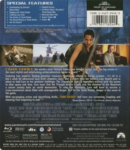 Perhaps to distance himself from Lara Croft's video game origins, director Simon West takes things a bit too seriously; Tomb Raider handles its plot (involving a planetary alignment, the nefarious Illuminati, and coveted relics that hold the key to controlling the flow of time) with all the gravity of a championship chess match... minus the tension. If the movie had lightened up and been truly suspenseful (instead of being suffused with been-there, done-that familiarity), it would have been an instant popcorn classic. As it is, however, this is an elegantly mounted adventure featuring exotic locations (in Cambodia and Iceland) and an exotic star born for her role. Even without her padded bra, Jolie would be the living embodiment of Lara Croft, and that's enough to bode well for inevitable sequels. --Jeff Shannon