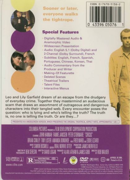 Circus is an appropriate title for this busy British three-ring caper film. John Hannah is the amiable ringmaster, a gambling junkie and "the smartest man I know" according to all his acquaintances. Which doesn't quite explain why everyone targets him as a patsy in their elaborate scams and schemes. There are plots aplenty here: frumpy accountant Peter Stormare hires Hannah to murder his wife and then videotapes the deed for collateral in a blackmail scheme. Upwardly mobile thug Brian Conley pressures Hannah to run his casino while plotting his demise. Sexy Famke Janssen puts on her slinky best femme fatale pose as Hannah's girlfriend with a questionable past, playing the players against one another. That past catches up with her when Fred Ward, an old partner in crime she abandoned holding the bag years back, arrives for payback. Almost too clever for its own good, Circus is an ingeniously engineered mercenary free-for-all thick with secret alliances, double-crosses, hidden identities, and a plot that twists into a new direction every five minutes. What it misses in all the self-conscious plotting is a human equation. Hannah's grinning, easygoing attitude and Janssen's sultry air of mystery help fill out the characters, but the only real satisfaction coming at the end of this crack caper is its sheer logistic perfection.