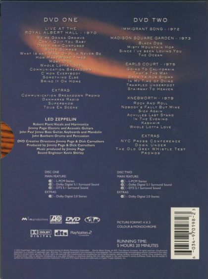 Highlights? It's not hyperbole to say that every powerhouse minute of this collection (some 230 minutes of concert footage plus another hour and a half of extra DVD material) is a rare musical and visual treat. But hearing Page's violin bow work on "Dazed and Confused" in DTS or Dolby 5.1 is an experience not soon forgotten. --Mark Walker