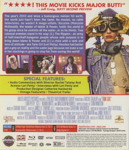 The Year is 2033. Earth has been clobbered with a comet, civilization has been destroyed, and it hasn't rained in 11 years. Nearly all the water on the planet is controlled by the evil Water and Power company, which is in turn controlled by the even more evil Kesslee (Malcolm McDowell). Who stands in the way? Some mysterious mutants called the Rippers and, of course, Tank Girl. Lori Petty plays Tank Girl, the wisecracking, defiant heart of the movie, as kind of an inner child gone wild. Unfortunately Petty can't quite carry a movie on her own--her zingers frequently fall flat and she seems to be continually worried that we still like her. Luckily there's Naomi Watts as Jet Girl to save the day: smart, shy, and inherently way more appealing than Tank Girl. Tank Girl is based on the comic of the same name, and it is visually an eye-popper. It's worth watching for the insane set and costume designs alone. --Ali Davis