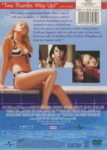 In terms of alluring female nudity, Swimming Pool shows a lot, but it's what remains concealed that gives this erotic thriller a potent, voyeuristic charge. With his Hitchcockian handling of secrets and lies, prolific French director François Ozon reunites with his Under the Sand star, Charlotte Rampling, to tell a seductive tale of murder and complicity, beginning when British mystery novelist Sarah Morton (Rampling) seeks peace and relaxation at her publisher's French villa, only to find his brash, sexually liberated daughter Julie (Ludivine Sagnier) arriving shortly thereafter to disrupt her solitary reverie. What begins as mutual annoyance turns into something more sinister and duplicitous, alternating between Julie's predatory sex with men and Sarah's observant, perhaps jealous fascination. These two women, generations apart, share in Ozon's delicate dance of trust, curiosity, and gradual understanding, until a twist ending that forces you to reevaluate everything you've seen. Only then will the mysteries of Swimming Pool be fully and tantalizingly revealed. (Note: The unrated version contains full-frontal nudity that's been edited from the rated version. In both versions, the overall plot is not affected.) --Jeff Shannon