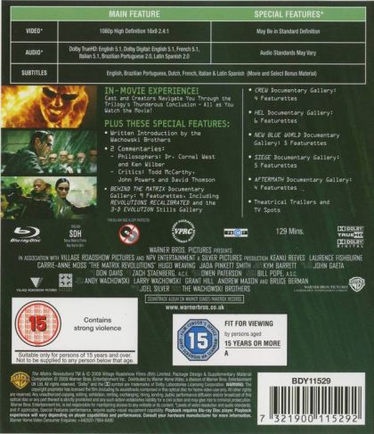 Despite the inevitable law of diminishing returns, The Matrix Revolutions is quite satisfying as an adrenalized action epic, marking yet another milestone in the exponential evolution of computer-generated special effects. That may not be enough to satisfy hardcore Matrix fans who turned the Wachowski Brothers' hacker mythology into a quasi-religious pop-cultural phenomenon, but there's no denying that the trilogy goes out with a cosmic bang instead of the whimper that many expected. Picking up precisely where The Matrix Reloaded left off, this 130-minute finale finds Neo (Keanu Reeves) at a virtual junction, defending the besieged human enclave of Zion by confronting the attacking machines on their home turf, while humans combat swarms of tentacled mechanical sentinels as Zion's fate lies in the balance. It all amounts to a blaze of CGI glory, devoid of all but the shallowest emotions, and so full of metaphysical hokum that the trilogy's detractors can gloat with I-told-you-so sarcasm. And yet, Revolutions still succeeds as a slick, exciting hybrid of cinema and video game, operating by its own internal logic with enough forward momentum to make the whole trilogy seem like a thrilling, magnificent dream. -- Jeff Shannon