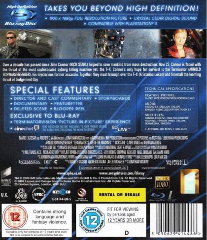 The second sequel to the 1984 sci-fi action classic, Terminator 3: Rise of the Machines is the first film without the involvement of director James Cameron. Instead, Jonathan Mostow, the man behind Breakdown and U-571, has stepped in to fill the shoes left vacant by Cameron. In addition, the role of John Connor from the second film has been recast, with In the Bedroom's Nick Stahl taking over for Edward Furlong. Set ten years after the events of 1991's Terminator 2: Judgement Day, the film finds Connor living on the streets as a common laborer. Sarah Connor, his mother, has since died, and their efforts in the second film have not stopped the creation of SkyNet artificial intelligence network. As he will still become the leader of the human resistance, Connor is once again targeted by a Terminator sent from the future by SkyNet. This new Terminator, T-X (Kristanna Loken), is a female and is more powerful than any of her predecessors. To protect Connor, the human resistance sends a new T-101 (Arnold Schwarzenegger) back from the future. Also starring Claire Danes, Terminator 3: Rise of the Machines had its world premiere when it showed out of competition at the 2003 Cannes Film Festival. — Matthew Tobey